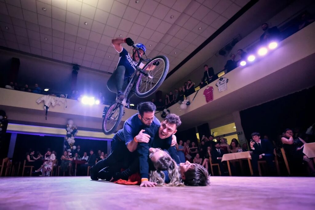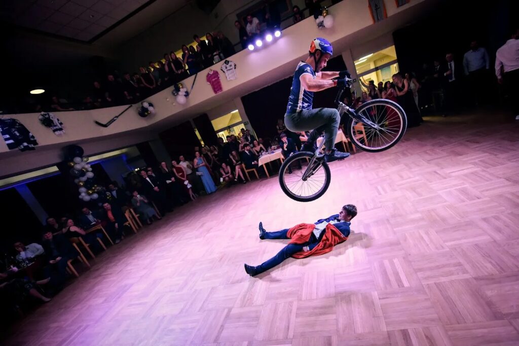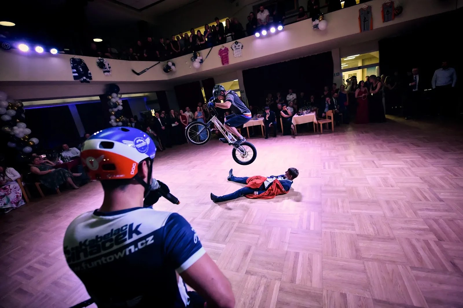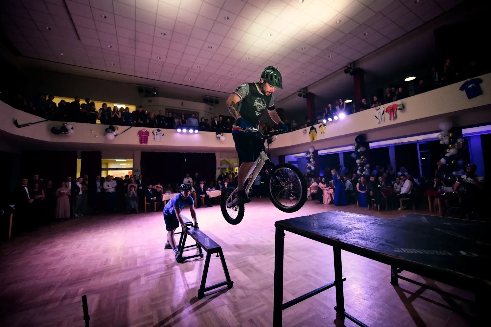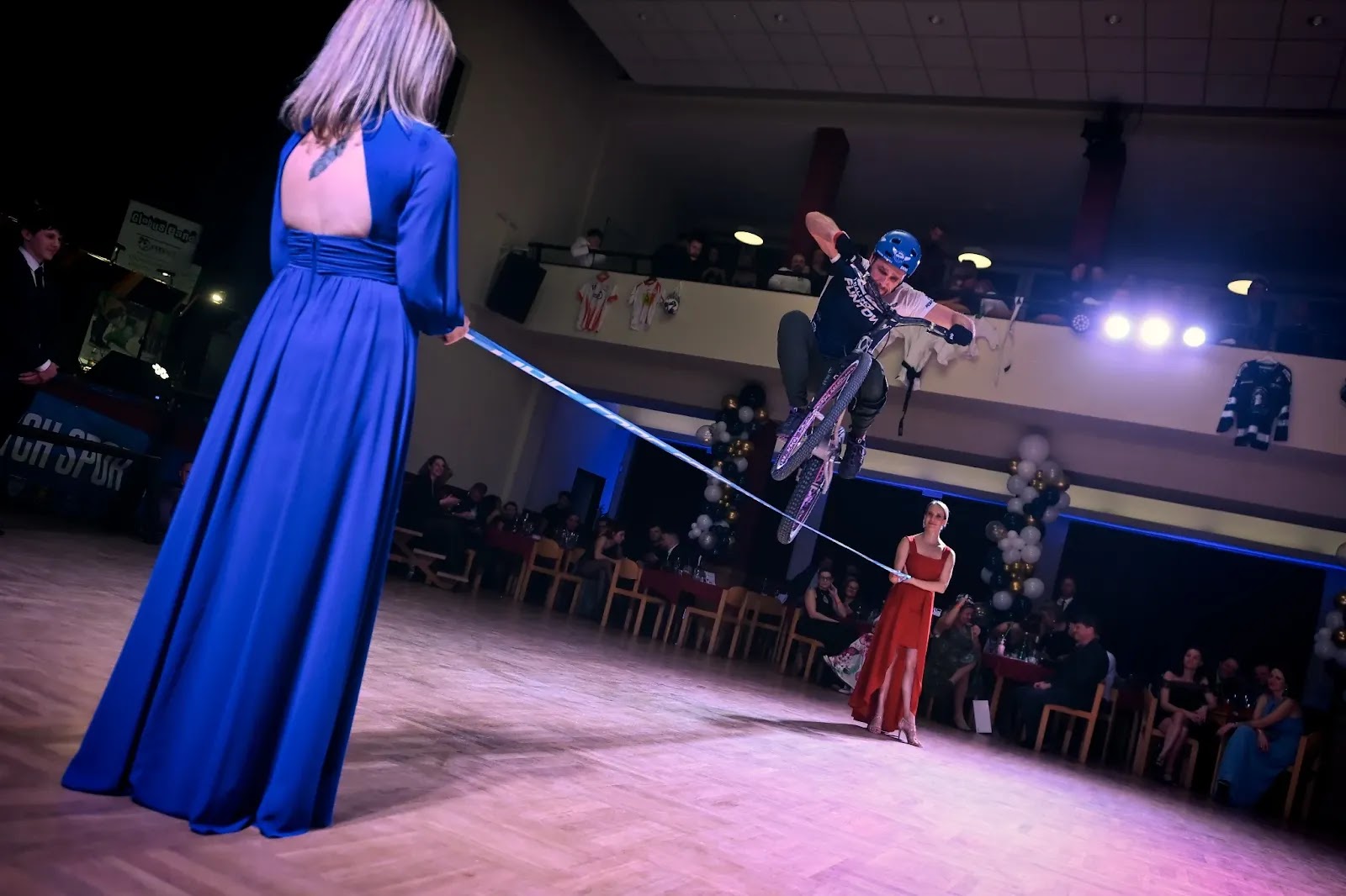 Ples sportovních klubů hodně překvapil. 600+ diváků, skvělé prostředí sálu kulturního domu a hromada doprovodného programu pro sportovce a sportovkyně. Vlasta, Lukáš Valný a Tobík Dolák měli i dost prostoru v zázemí pro rozcvičku, která sama o sobě měla diváky. Trochu boj byl s navoskovanou podlahou a přišlo i pár oblíbených pádů pro diváky (naštěstí na rovině a do pohody). Po klasickém intru na překážkách jsme se vrhli i na dobrovolníky a dobrovolnice. Vrcholem pak byl battle jezdci vezsus chodci ve skoku do výšky. Sice nebylo překvapením, že na kluzké podlaze vyhrál skokan bez kola, ale že to bude ragbista nečekal nikdo. Děkujeme za vřelé přijetí, fandění a snad se potkáme ve větším na letní akci.