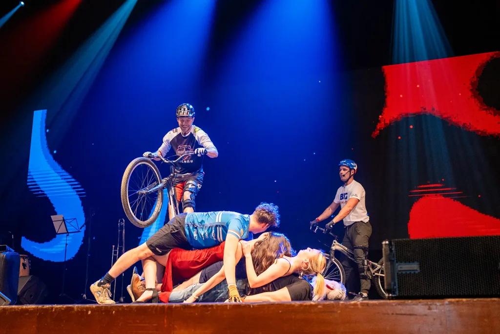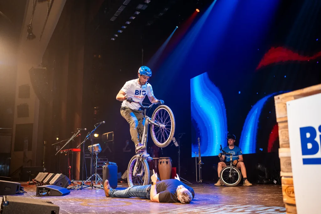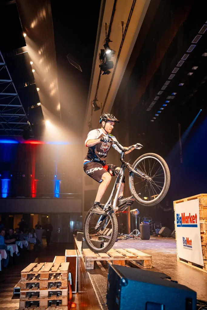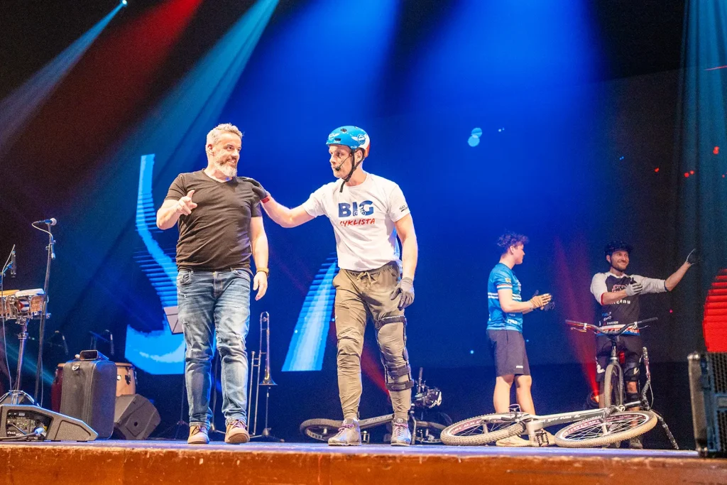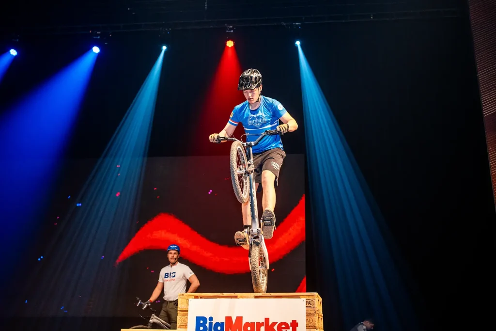 Byli jsme pozváni na expo jednoho z velkých podporovatelů UCI světových pohárů společnosti BIGMAT, která chtěla svým zaměstnancům a partnerům, ukázat trochu cyklistiky. Volba padla na náš tým za což děkujeme. Trochu časový pres nás nerozházel, vešli jsme se i do prostoru a nezničili žádné z drahých laserů a LED obrazovek. Tentokrát jsme nevyužili naše tradiční překážky, ale stylově jsme jezdili po klasických paletách a Vlasta na sebe hodil i BigMat tričko. Sekundovali mu Marek Tryner v jeho první exhibici po úrazu kolene. Tobík Dolák, který nakonec skončil jako dobrovolník a Lukáš Valný, který si poprvné v životě užil technického problému během exhibice, kdy mu praskl řetěz snad po prvních 3 skocích na úplně novém kole. Ne moc dobrá vizitka pro tuhle řadu X9.