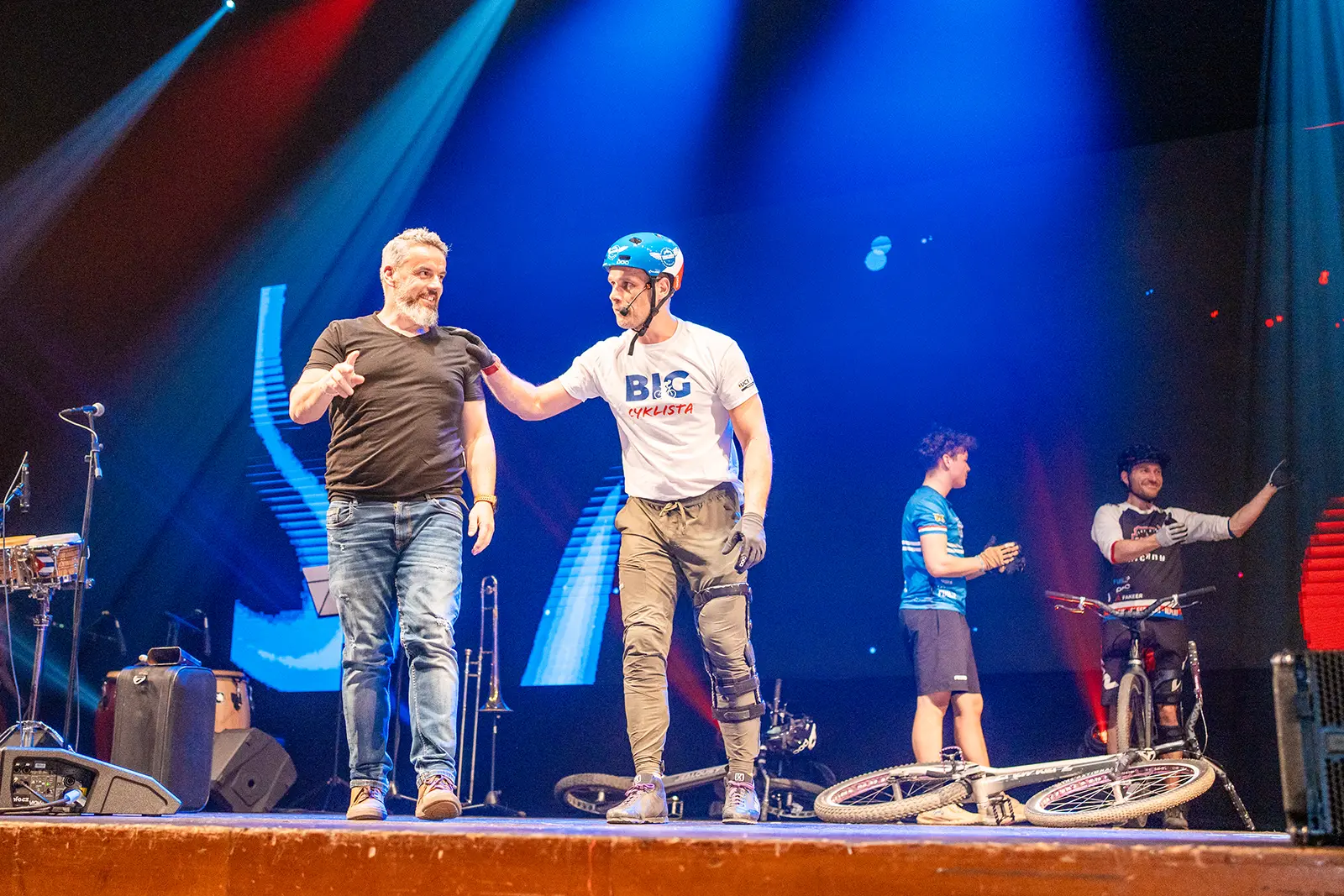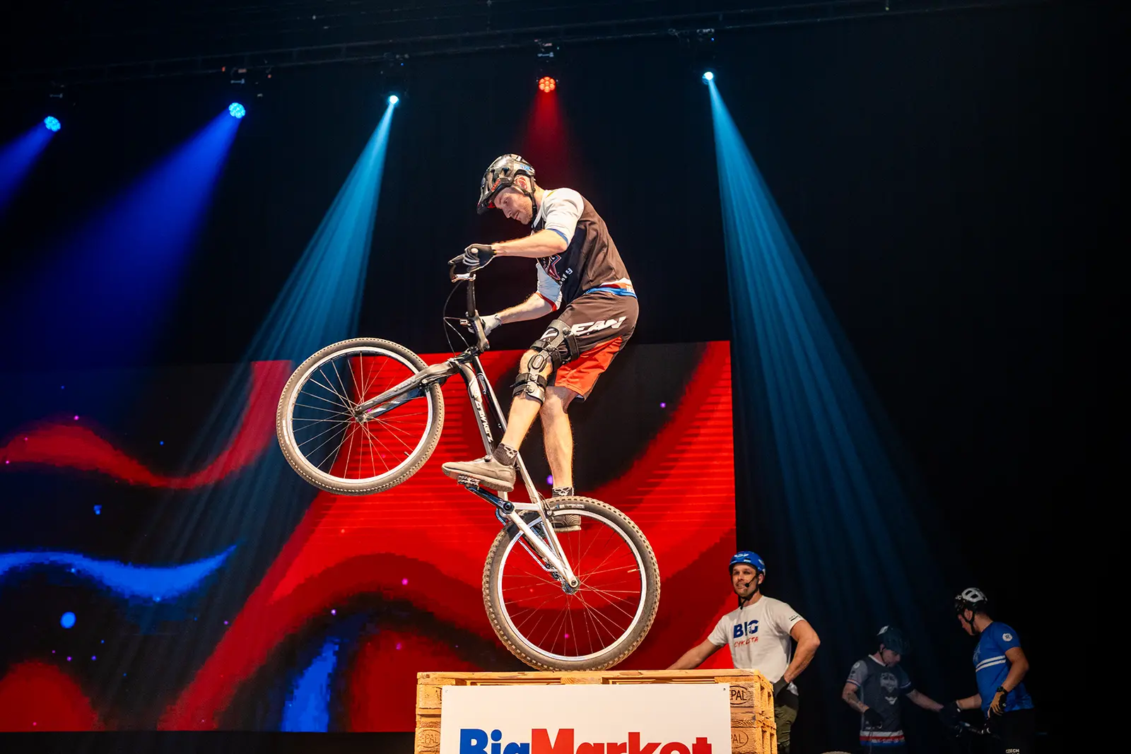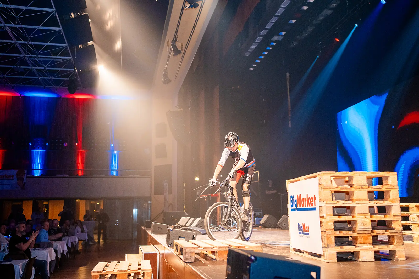 Byli jsme pozváni na expo jednoho z velkých podporovatelů UCI světových pohárů společnosti BIGMAT, která chtěla svým zaměstnancům a partnerům, ukázat trochu cyklistiky. Volba padla na náš tým za což děkujeme. Trochu časový pres nás nerozházel, vešli jsme se i do prostoru a nezničili žádné z drahých laserů a LED obrazovek. Tentokrát jsme nevyužili naše tradiční překážky, ale stylově jsme jezdili po klasických paletách a Vlasta na sebe hodil i BigMat tričko. Sekundovali mu Marek Tryner v jeho první exhibici po úrazu kolene. Tobík Dolák, který nakonec skončil jako dobrovolník a Lukáš Valný, který si poprvné v životě užil technického problému během exhibice, kdy mu praskl řetěz snad po prvních 3 skocích na úplně novém kole. Ne moc dobrá vizitka pro tuhle řadu X9.